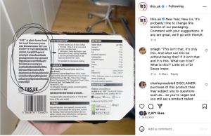 When you’re creating a new product, make your audience on social feel part of your journey. Can they vote for the next flavour, have exclusive access to tasting events or a sneak peek behind the scenest? Plant-based food brand THIS took community engagement to the next level when updating the packaging copy for their plant-based mince, asking fans to comment their suggestions to be in with a chance of having it featured on-pack: