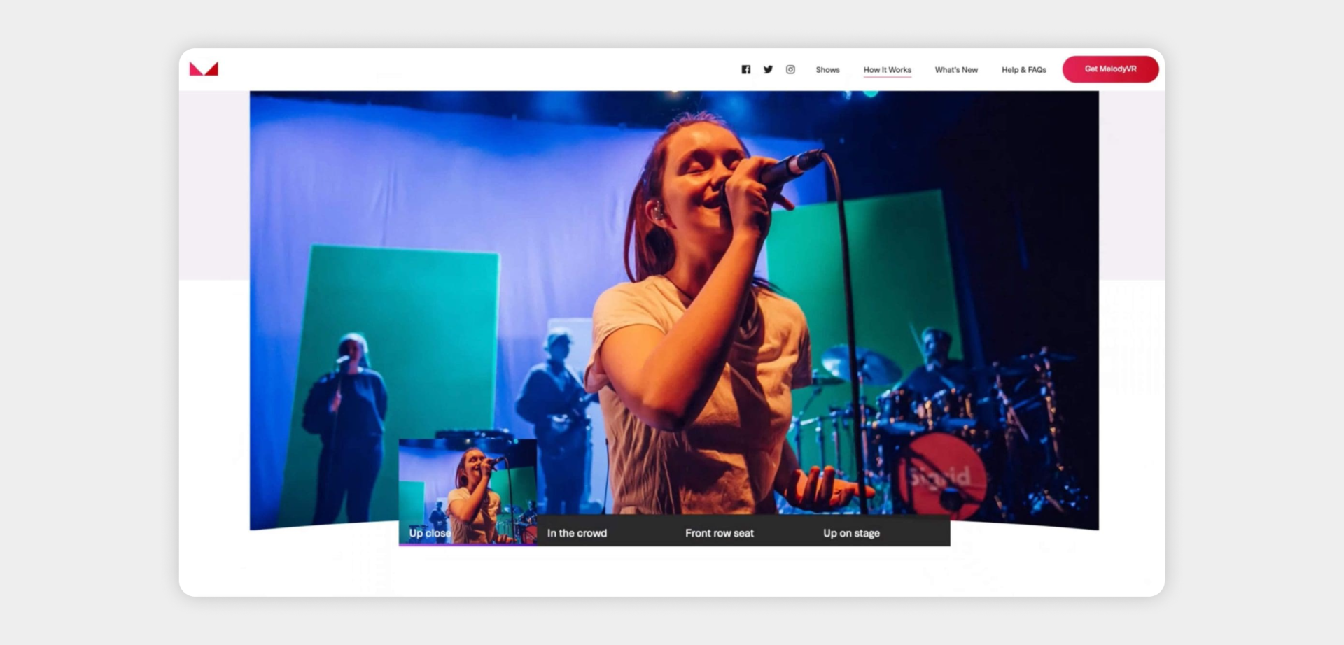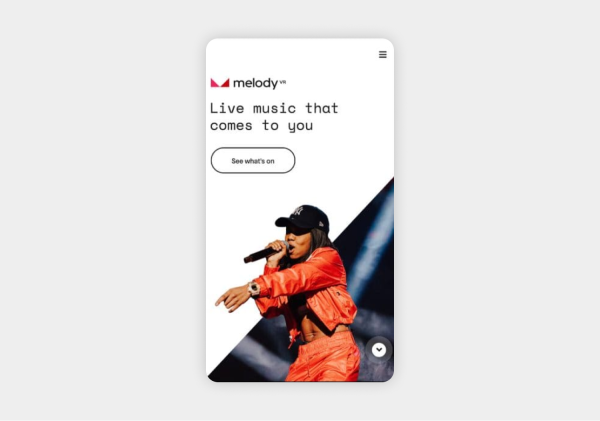 Clever content interactions and visuals told MelodyVR’s compelling story. As well as devising the optimum method for users to select a virtual spot to watch gigs, we also optimised the core user journeys – such as super-easy access to app downloads.